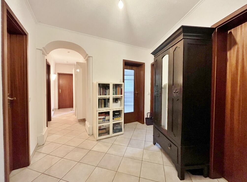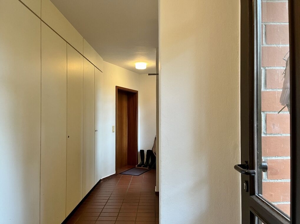 Die Wohnung liegt im Erdgeschoss eines 1983 erbauten Fünf-Familienhauses und der Zugang erfolgt zu ebener Erde über den gemeinschaftlichen Eingang. Der außergewöhnliche Schnitt der Wohnung und die Anordnung der Räume sind sehr durchdacht und bieten allen Bewohnern eine perfekte Privatsphäre bei kurzen Wegen zu Küche, Wohnzimmer, Bad und WC.