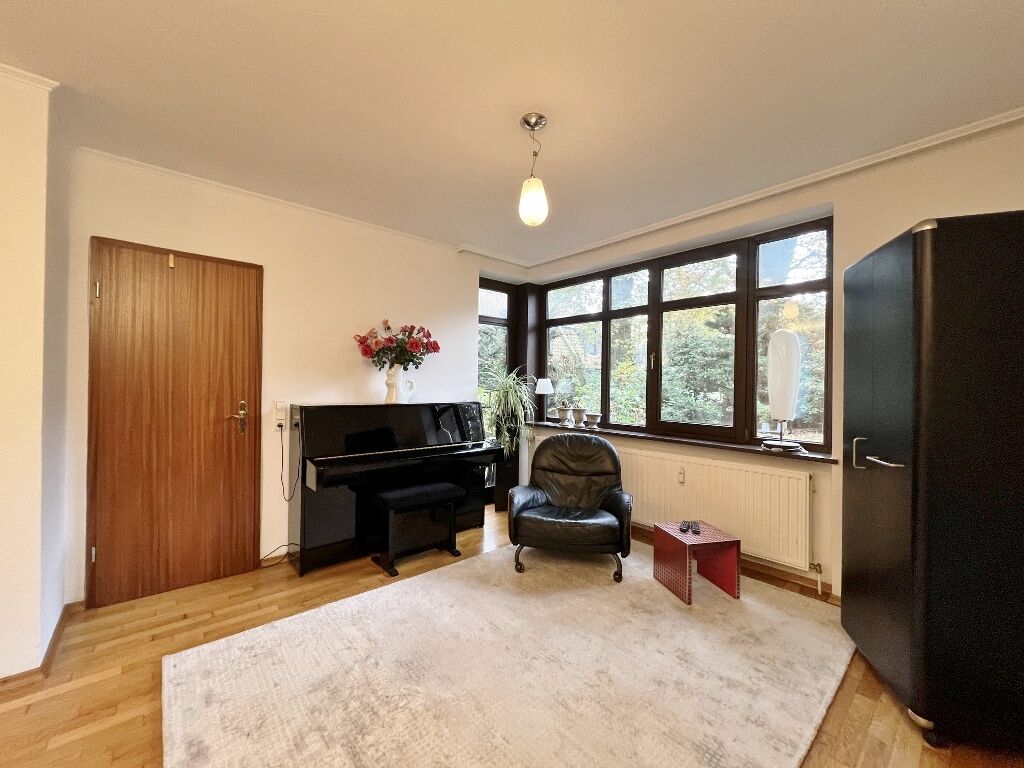 Neben der Küche befindet sich das Wohnzimmer mit ca. 24 m², welches von zwei Seiten Licht erhält und gemütlich eingerichtet werden kann. Ein Erkerfenster unterstreicht das Ambiente mit seinem eigenen Charme. Auch hier können Sie einen Esstisch integrieren und die obligatorische Wohnlandschaft unterbringen. Der Zugang aus der Diele ist ebenfalls gegeben.
