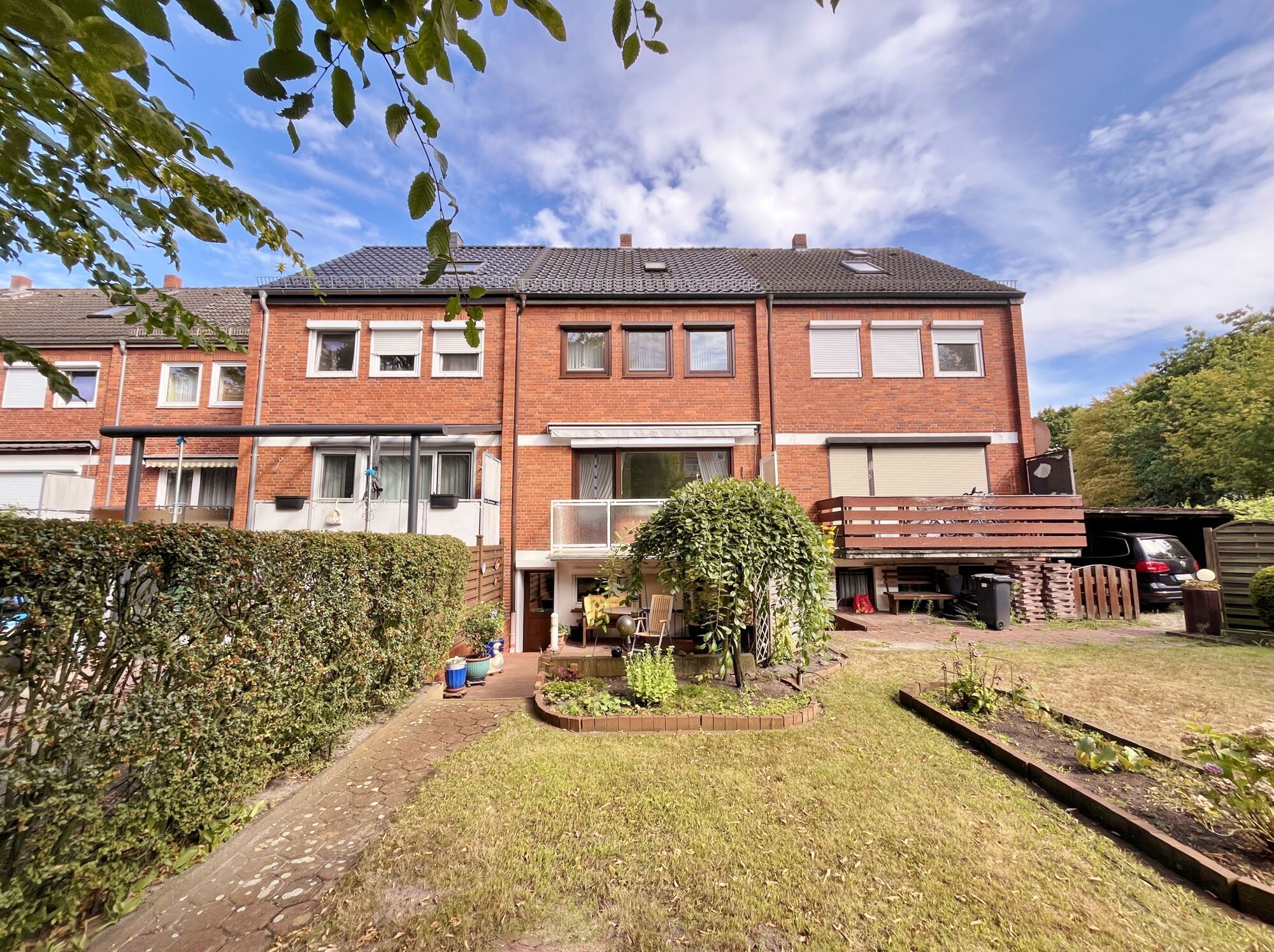 Das Reihenhaus liegt an einer Anliegerstraße. Fußläufig sind die Straßenbahn und das Rolandcenter gut zu erreichen.