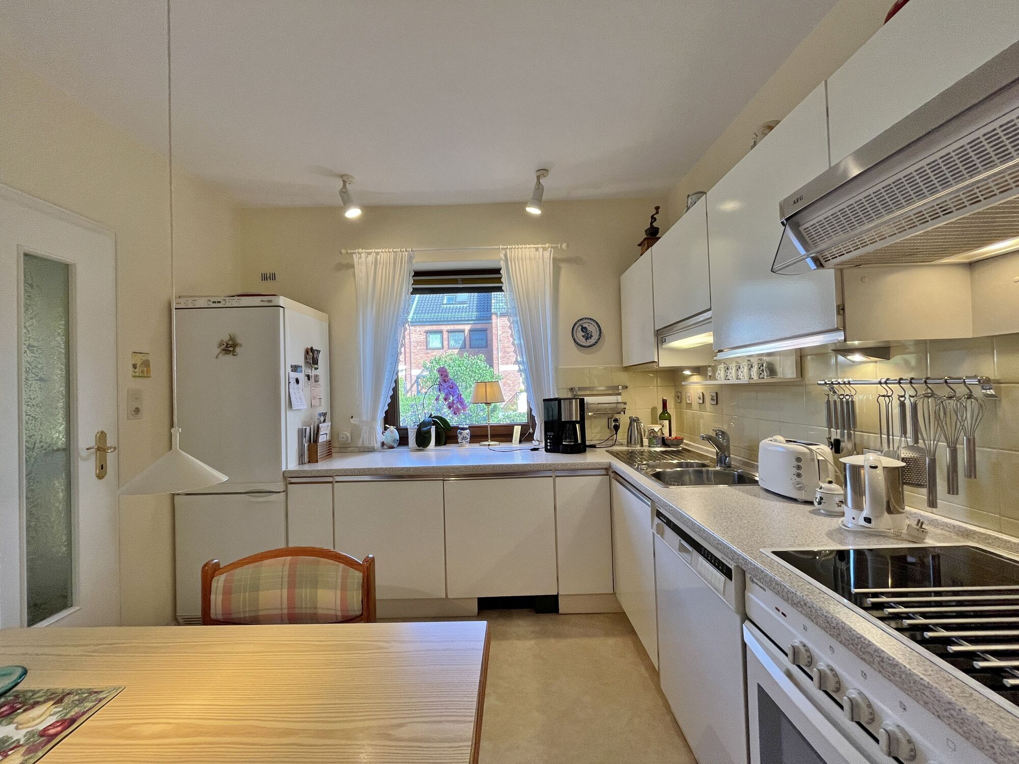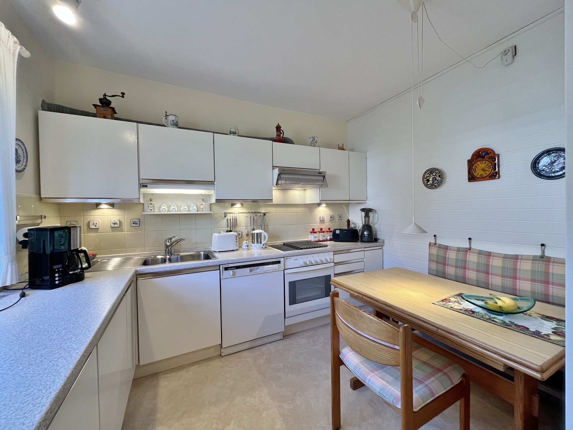 Die gut ausgestattete Küche bietet nicht nur genügend Platz für kulinarische Kreationen, sondern auch für gesellige Mahlzeiten mit der Familie. Sollten Sie eher eine offene Küche bevorzugen, ist dies durch die Öffnung der Wand zum Wohnzimmer möglich.