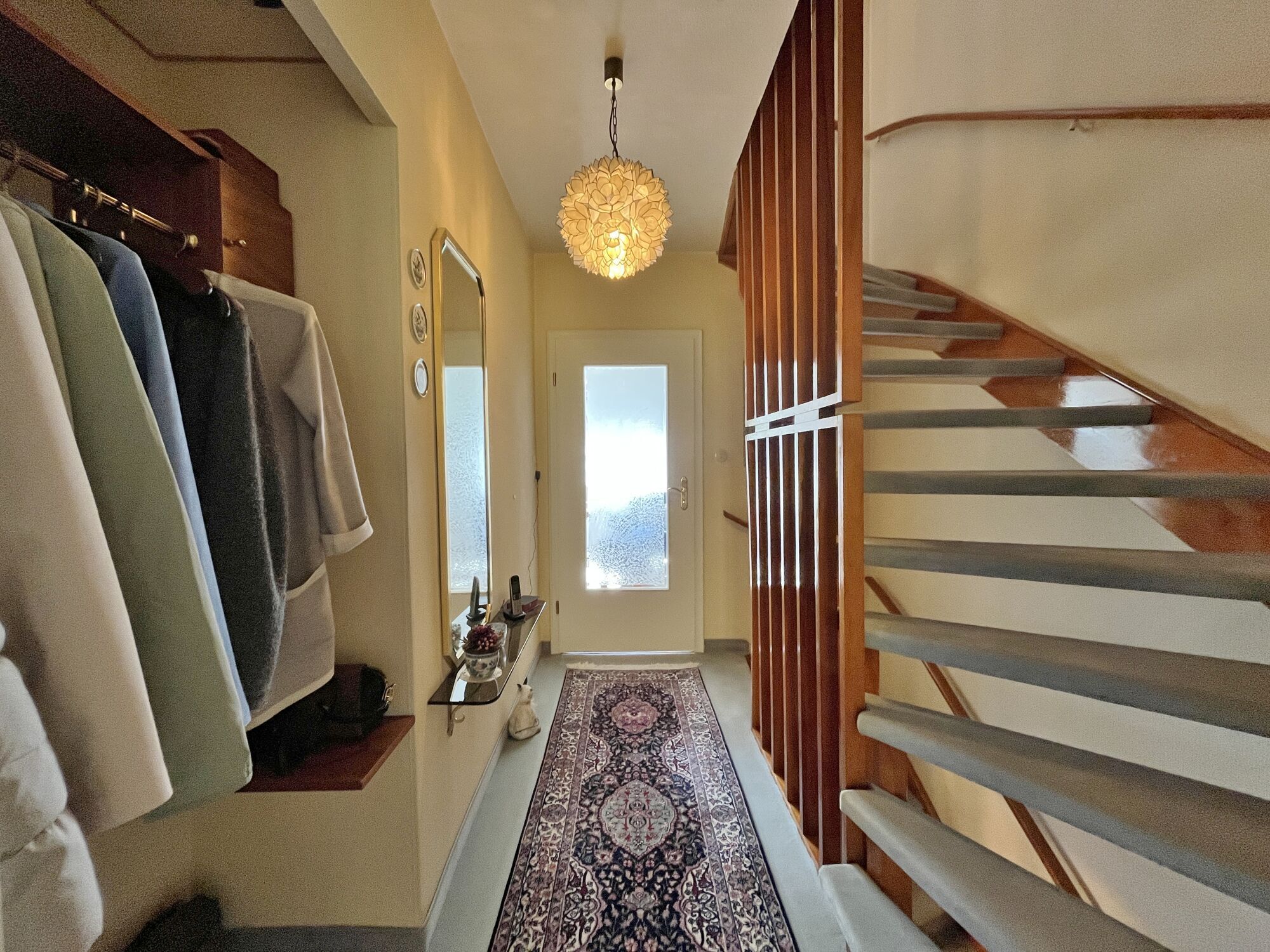 Dieses charmante Reihenhaus aus dem Jahr 1965 vereint klassischen Stil mit modernem Komfort und bietet auf 108 m² Wohnfläche sowie einem 154 m² großen Grundstück ein ideales Zuhause für Familien, die Wert auf ein harmonisches Wohnumfeld legen. Schon beim Betreten des Hauses werden Sie von einem einladenden Flur empfangen, der Ihnen einen ersten Eindruck von der durchdachten Raumaufteilung vermittelt.