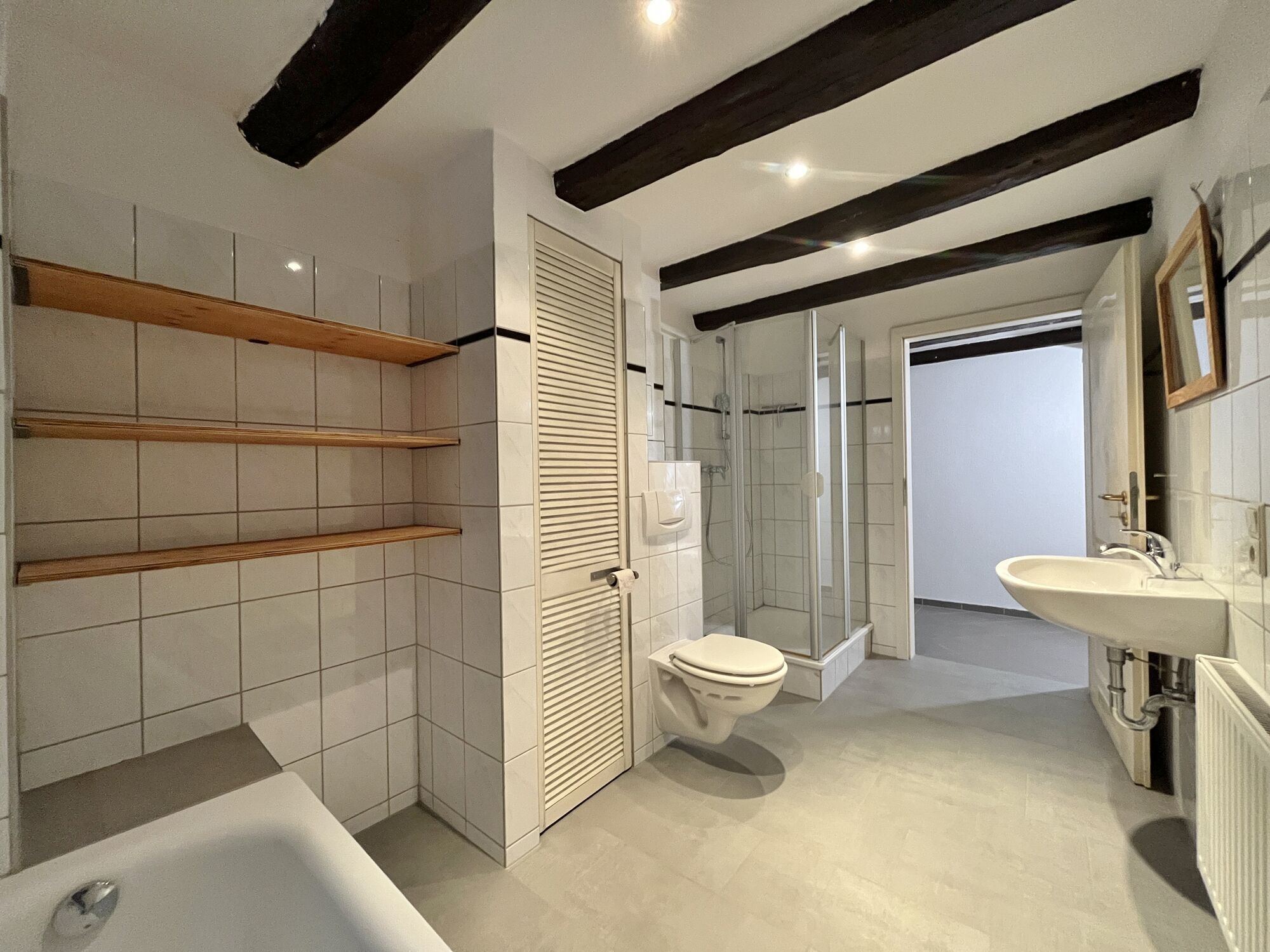 Die beiden Zimmer sind etwa gleich groß und können gleichermaßen als Schlafraum genutzt werden. Das Vollbad lässt keine Wünsche offen; es verfügt sowohl über eine Badewanne, als auch eine Dusche, und ein Fenster sorgt für Licht und Luft. Zudem befindet sich hier die Gasetagenheizung, die für die Beheizung und Warmwasseraufbereitung der Wohnung sorgt.