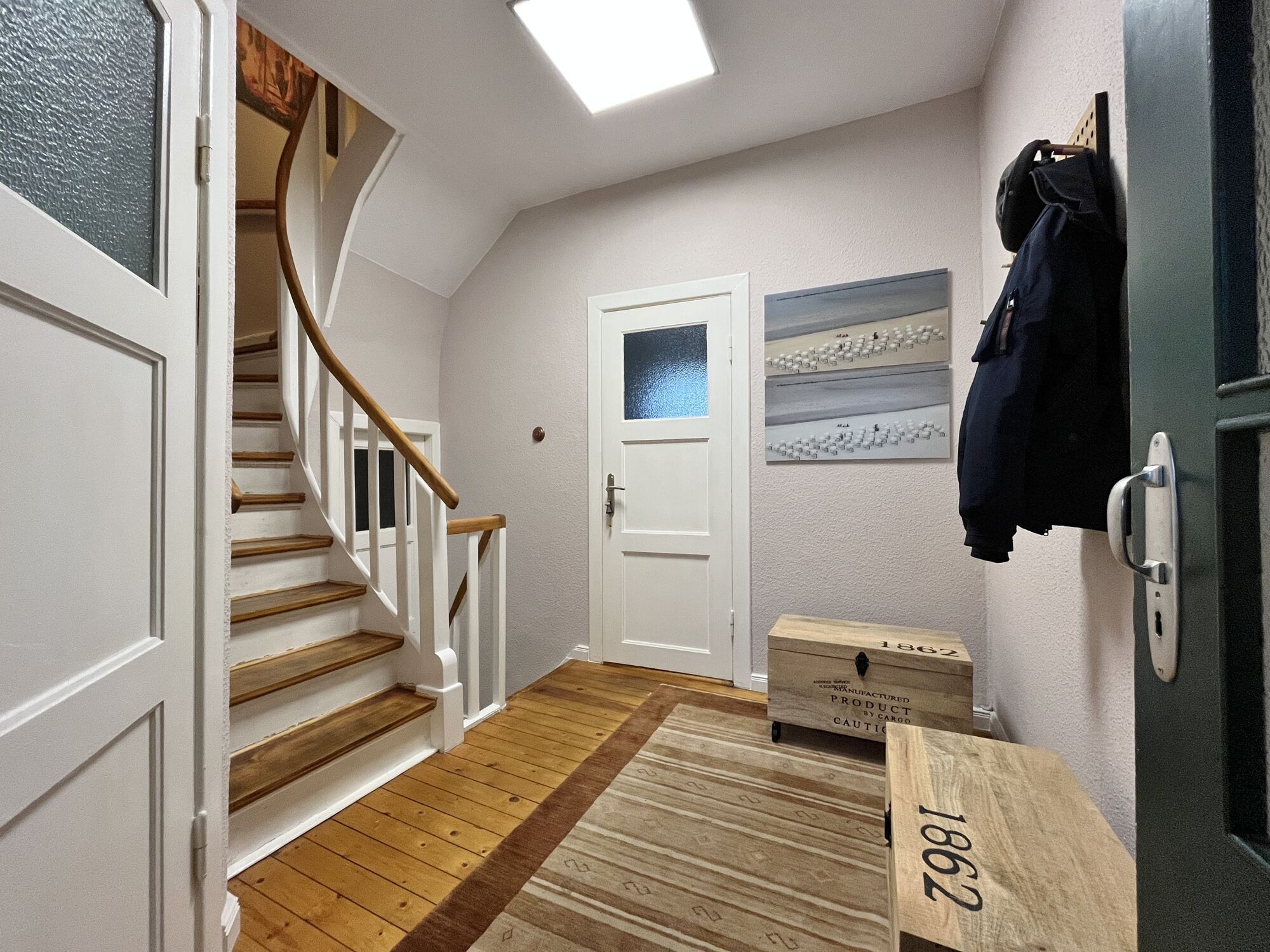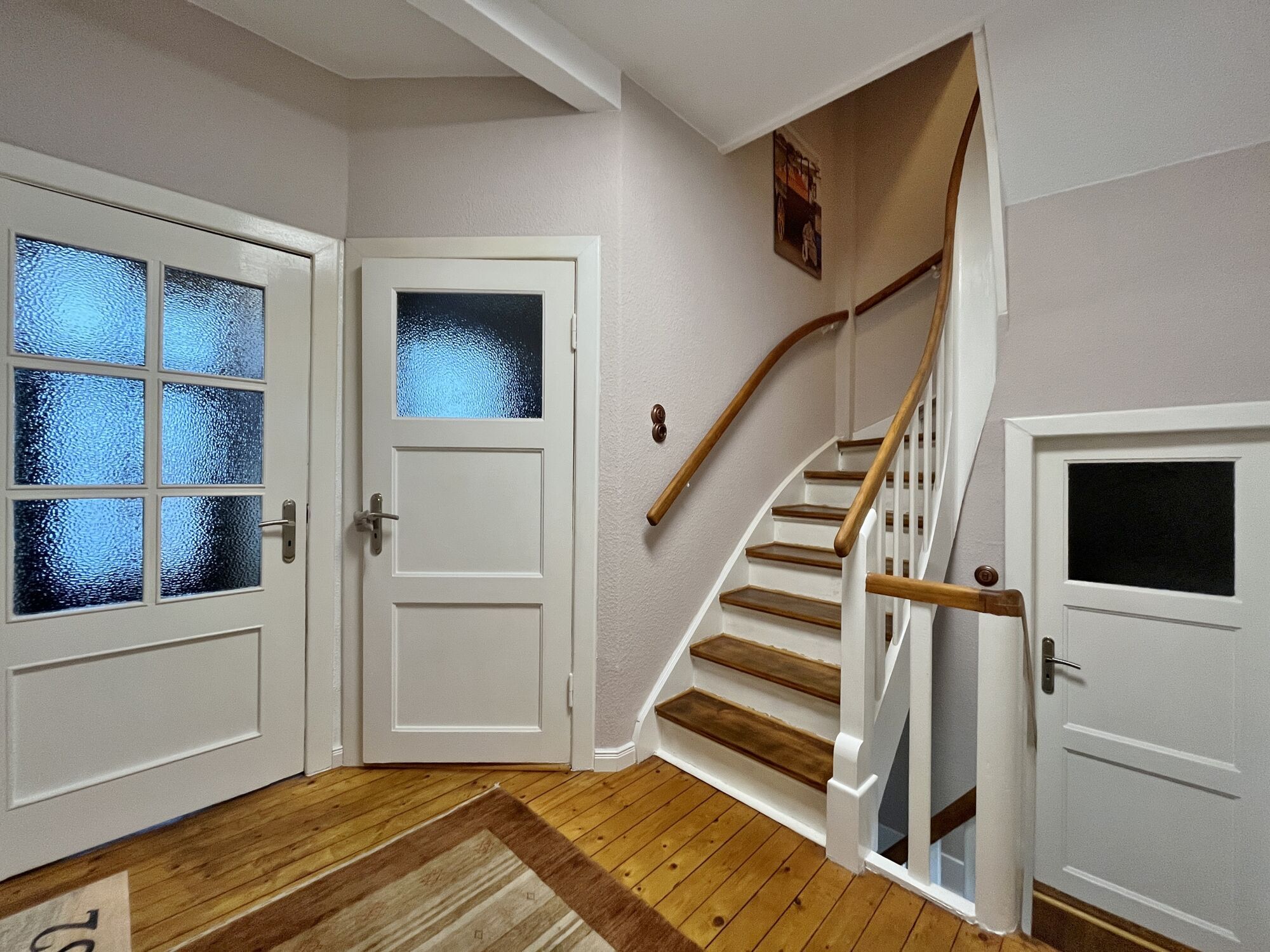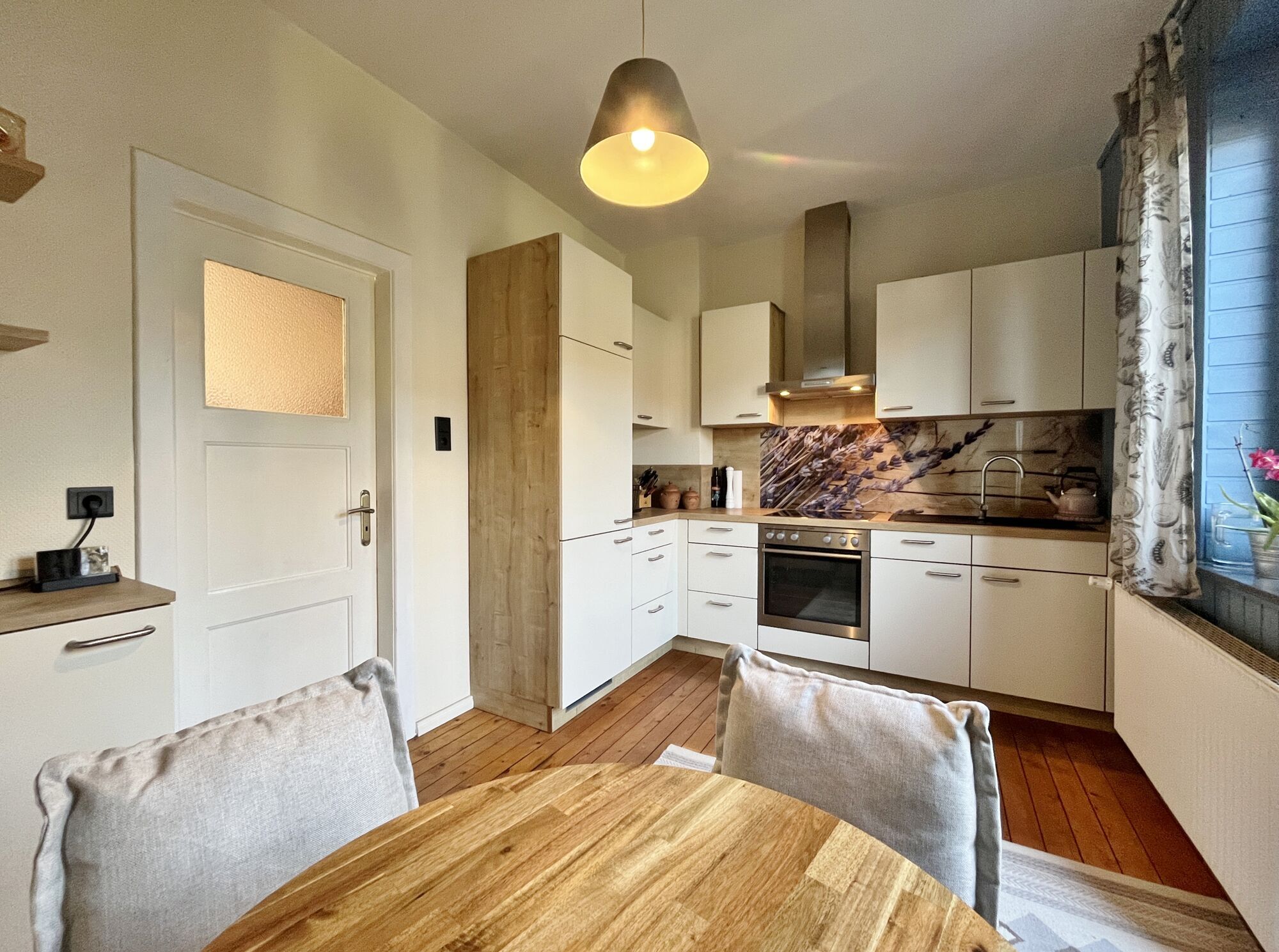 - Holzdielenboden im Flur und Küche