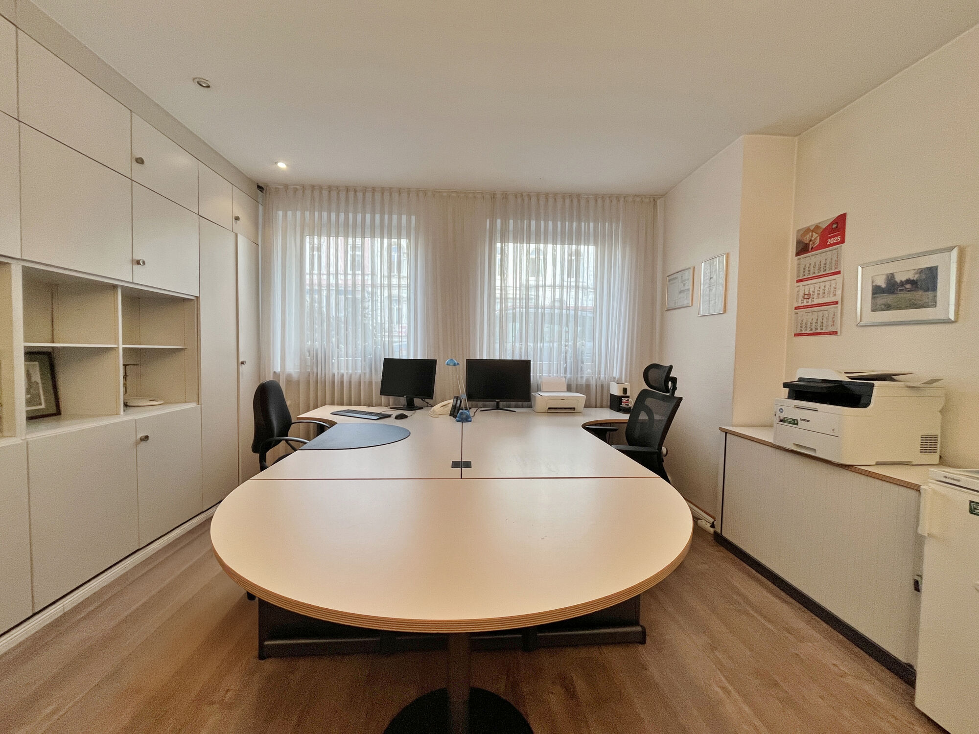Möblierter Büroraum mit doppeltem Arbeitsplatz