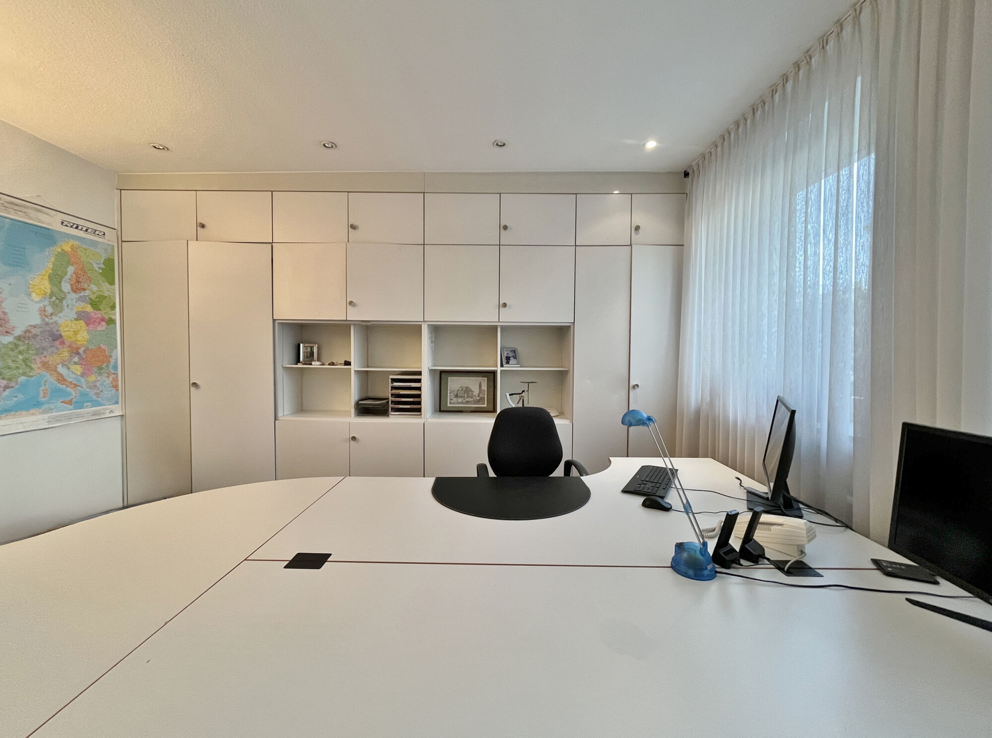 Büromöbel, Einbauschrank und Kühlschrank im Mietpreis enthalten