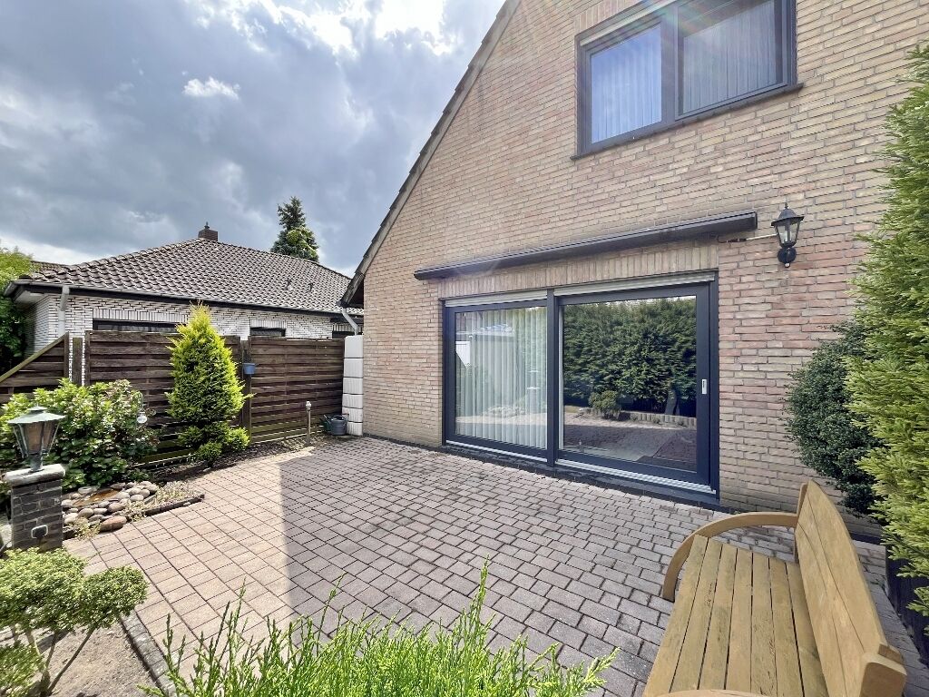 Das Haus liegt an der Landstraße leicht nach hinten versetzt. Der Garten und die Terrasse liegen auf der Rückseite des Hauses.