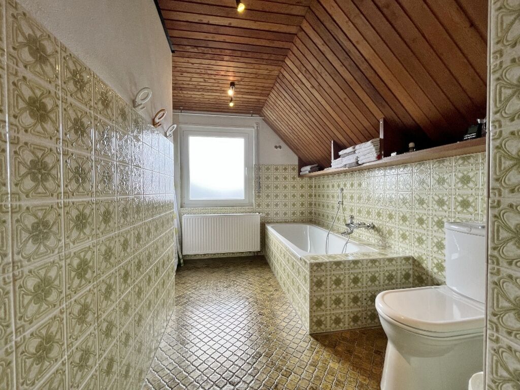 Im Dachgeschoss erwarten Sie ein ca. 20 m² großes Schlafzimmer und ein ca. 13 m² großes Kinderzimmer. Ein Badezimmer, das mit nostalgischen Fliesen ausgestattet ist und über neue Sanitäreinrichtungen verfügt, zeigt eine gelungene Kombination zwischen neu und alt.