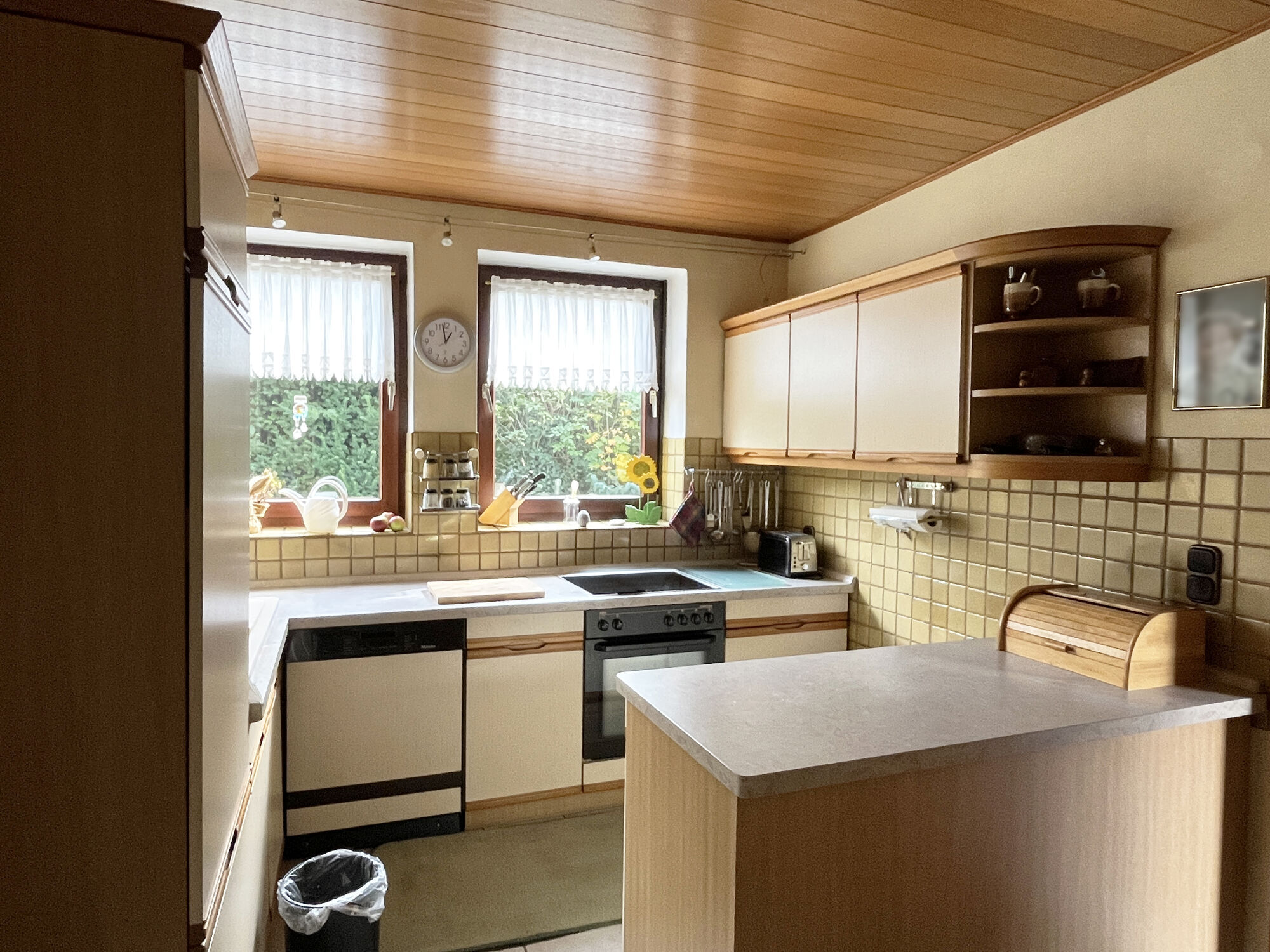 Die Küche verfügt über eine Einbauküche und Platz für einen kleinen Essbereich; eine Öffnung zum angrenzenden Wohn-/Esszimmer ist mit überschaubarem Aufwand umsetzbar.