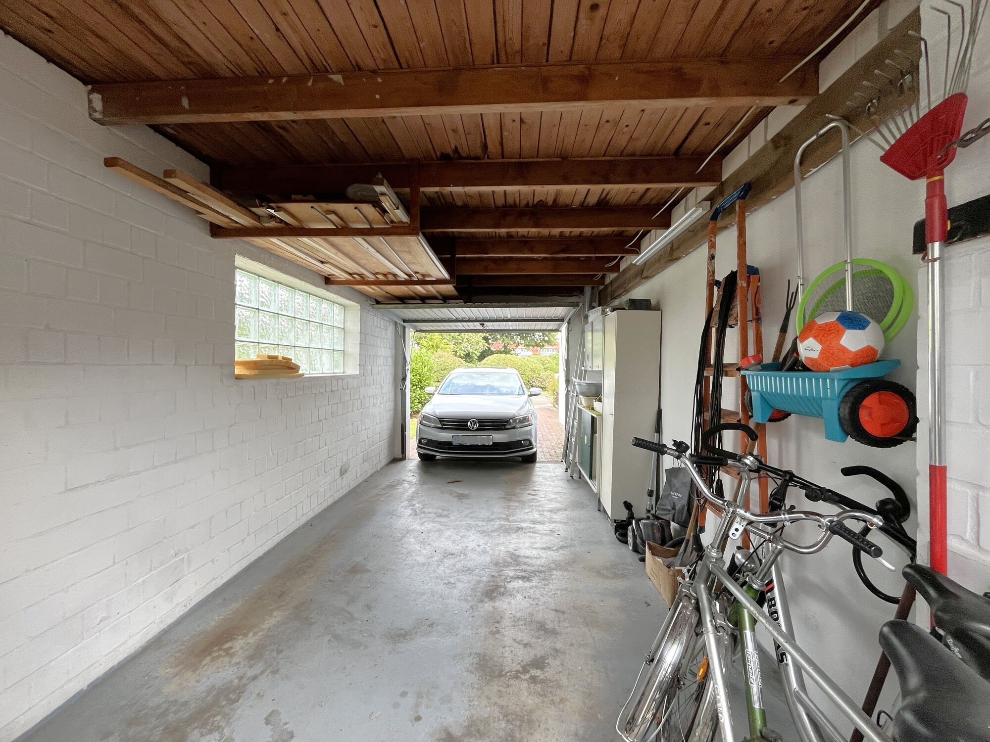 Die Garage bietet Platz für einen PKW oder zum Werkeln sowie Abstellfläche für Motorrad und Fahrräder. Ein hochwertiges Gartenhaus nimmt Geräte und Werkzeuge auf.