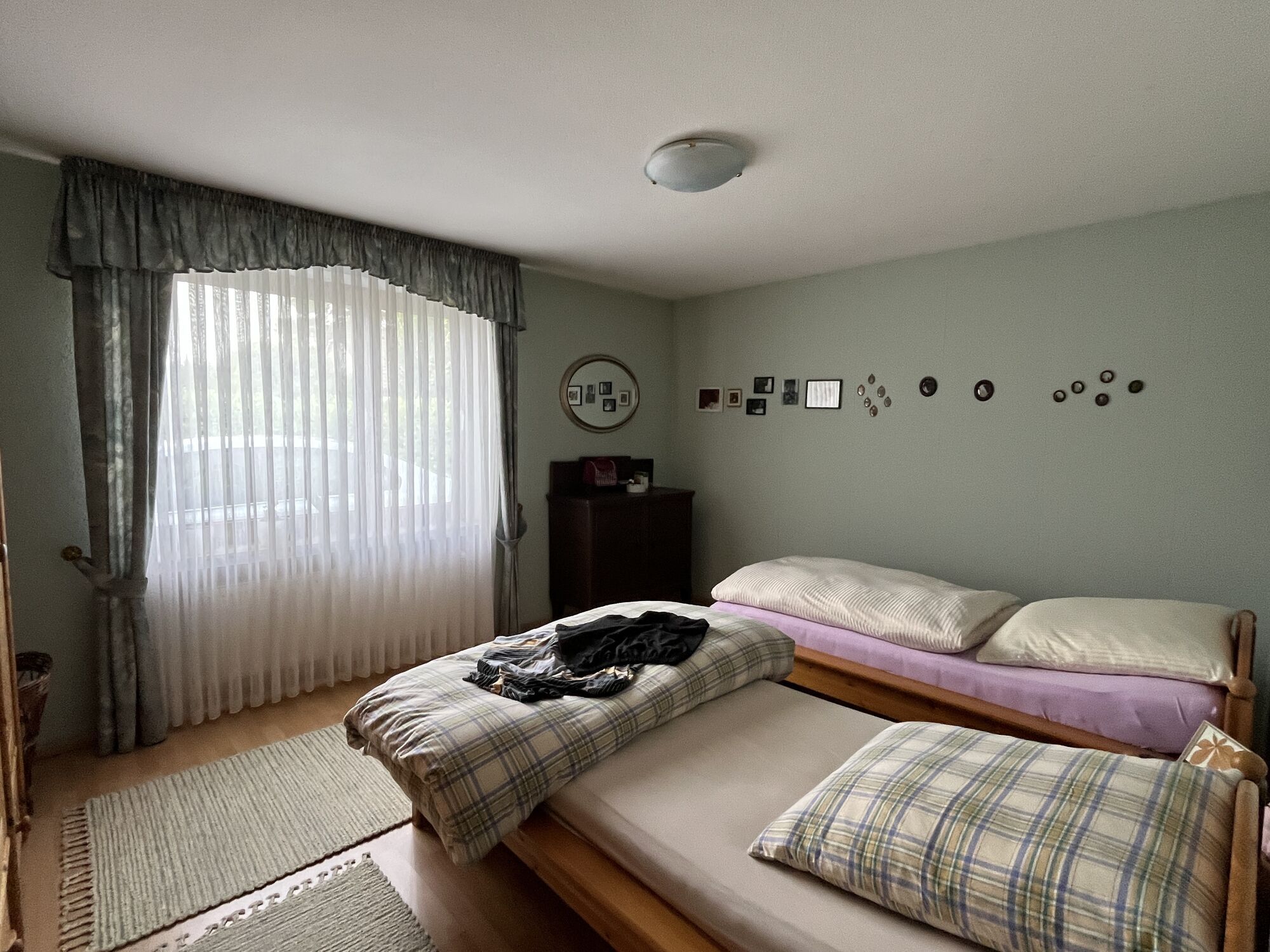Das gut geschnittene Schlafzimmer lässt sich ideal mit Doppelbett und Kleiderschrank möblieren. Ein weiteres Zimmer im Erdgeschoss überzeugt durch seinen quadratischen Schnitt und ist als Kinder-, Gäste- oder Arbeitszimmer nutzbar.