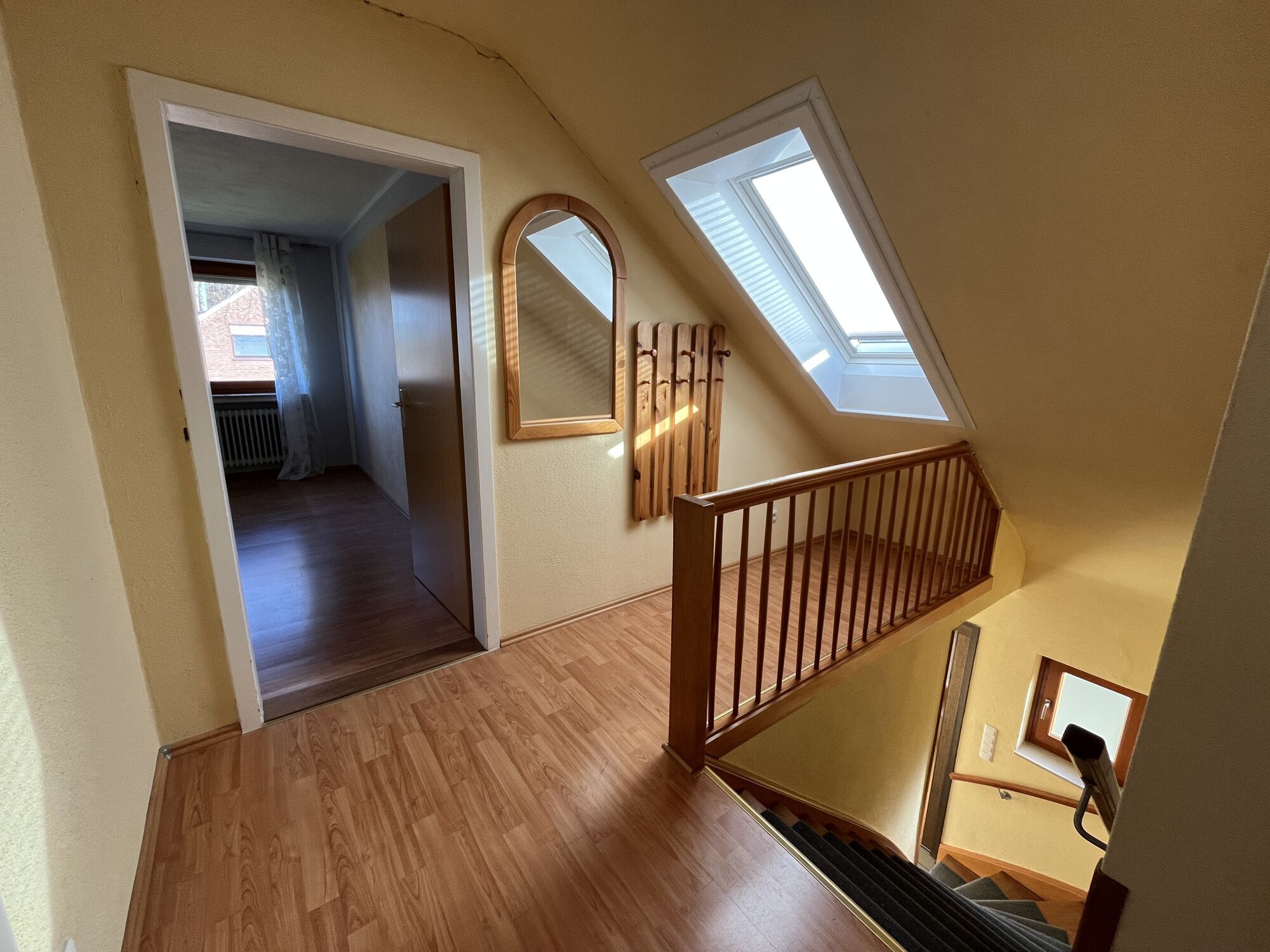 Das Obergeschoss verfügt über mehrere Schlafzimmer, ein weiteres Badezimmer sowie flexible Räume, die sich als Kinder-, Arbeits- oder Gästezimmer nutzen lassen. Das Dachgeschoss überzeugt durch seine großen Velux-Fenster, die den Raum mit natürlichem Licht durchfluten, und bietet so angenehme Rückzugsbereiche.