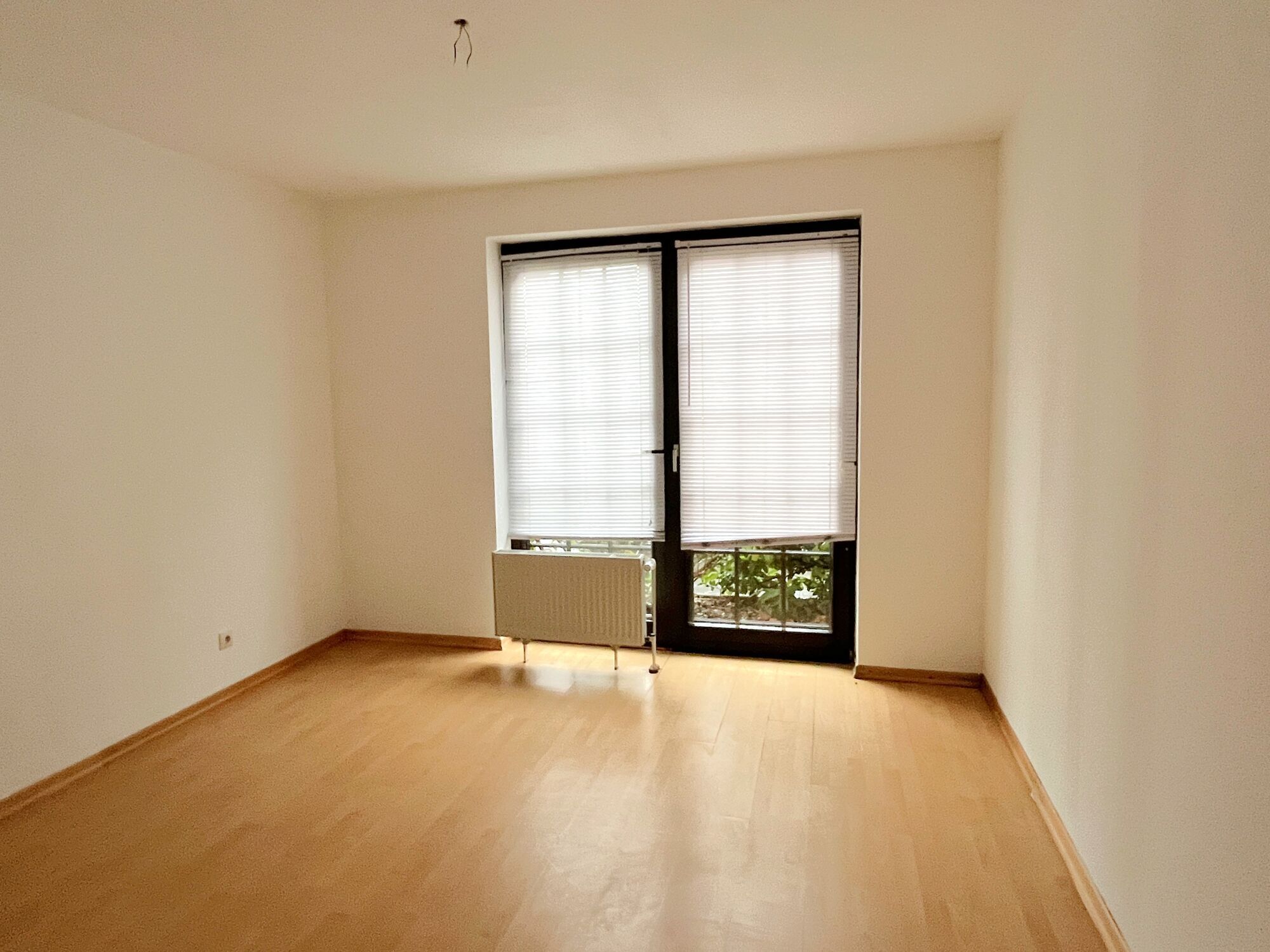 Nebenan liegt das Schlafzimmer, das durch bodentiefe Fenster mit viel Tageslicht versorgt wird. Angrenzend befindet sich das hell geflieste Badezimmer, das mit einer Badewanne ausgestattet ist.