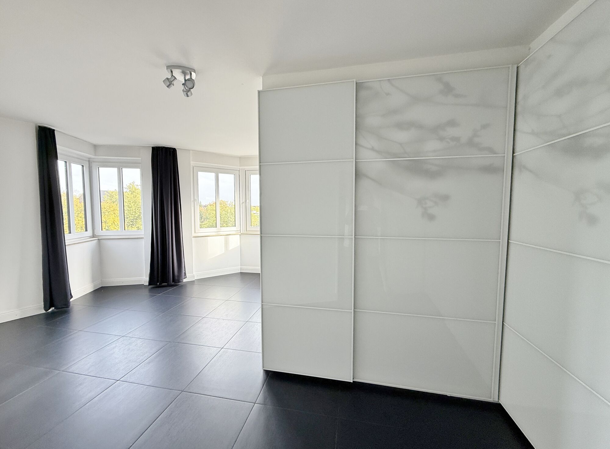 Das Schlafzimmer bietet mit ca. 21 m² einen ruhigen Rückzugsort und ist durch die vielen Fenster lichtdurchflutet. Ein maßangefertigter Schwebetürenschrank sorgt für viel Platz für Ihre Kleidung.