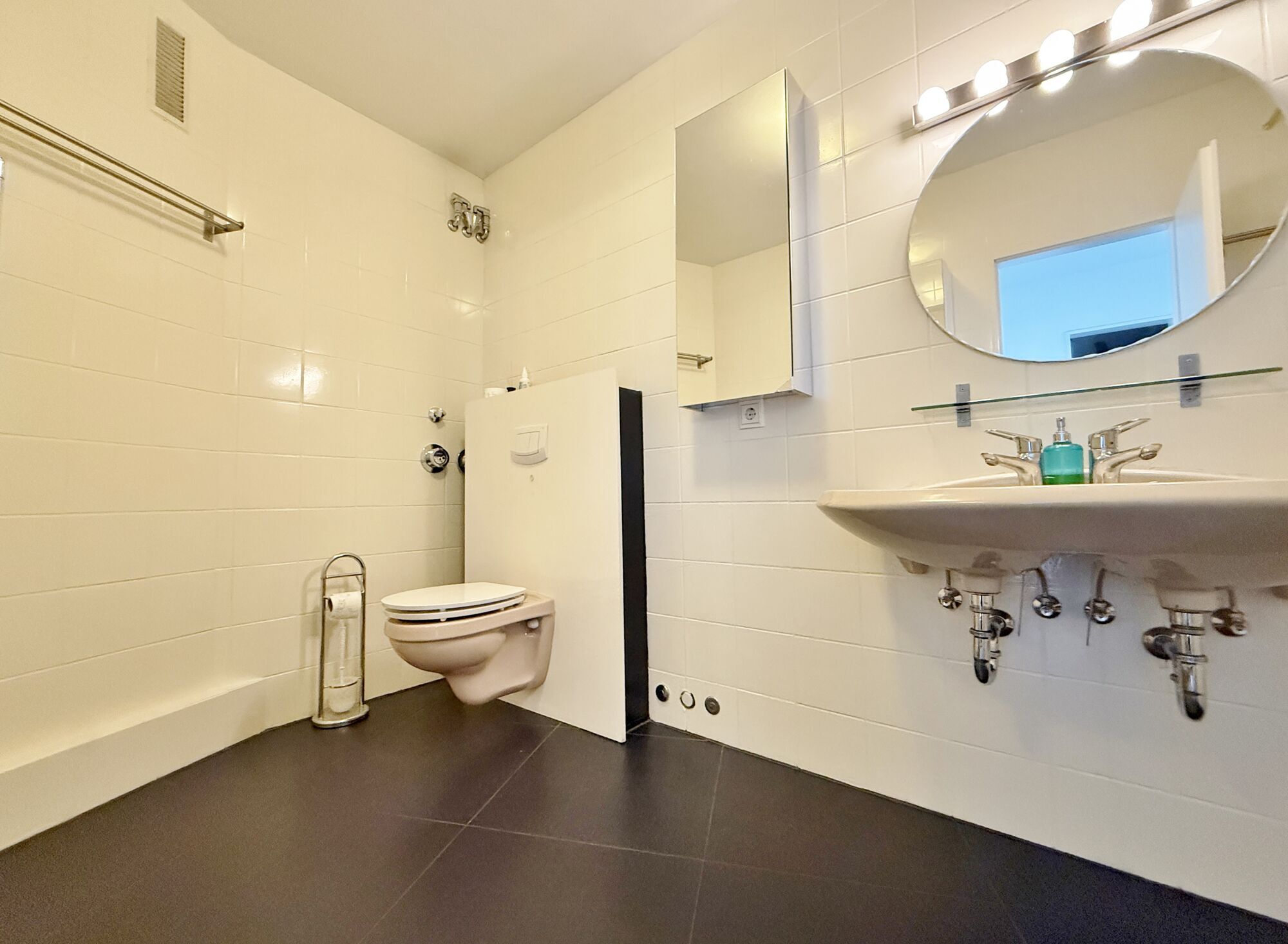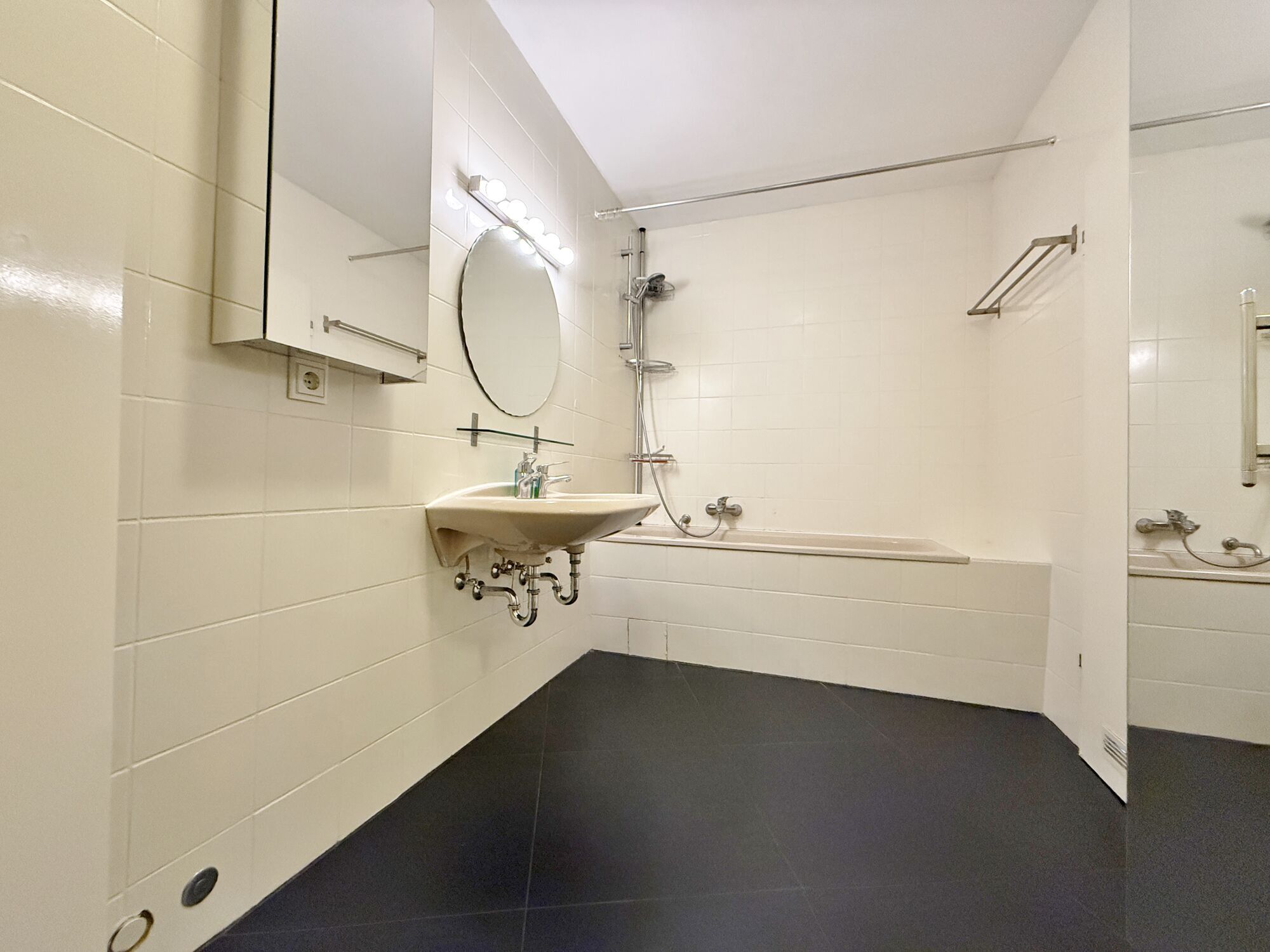Direkt neben dem Eingang befindet sich ein geräumiges, innenliegendes Wannenbad, das funktional gestaltet ist und über alle notwendigen Annehmlichkeiten verfügt sowie ein Abstellraum zum praktischen Verstauen Ihrer Vorräte und Putzutensilien.