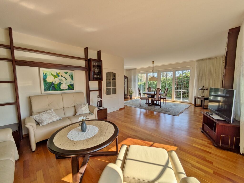 Die linke Haushälfte beherbergt ein geräumiges Einfamilienhaus, das 1967 erbaut wurde. Mit 5,5 Zimmern auf rund 206 m² Wohn- und Nutzfläche bietet es eine hervorragende Grundlage für eine wachsende Familie. Die rechte Haushälfte, die 1987 und 1993 erweitert wurde, umfasst eine charmante Büroeinheit mit Pantryküche und Duschbad auf ca. 43 m² im Erdgeschoss sowie eine einladende 2,5-Zimmer-Wohnung mit ca. 79 m² Wohnfläche im Dachgeschoss. Diese Wohnung ist derzeit frei und bietet eine moderne Küche, ein helles Wannenbad und eine großzügige Dachterrasse auf dem Carportdach – ideal für zukünftige Mieter.