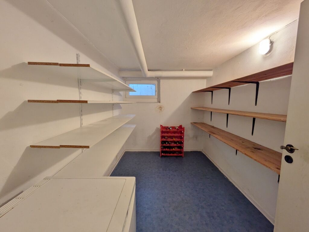 Der Vollkeller umfasst einen großen Flur, zwei Abstellräume, eine Waschküche und ein älteres Wannenbad. Der ehemalige Stahlöltank ist in einem separaten Raum untergebracht.