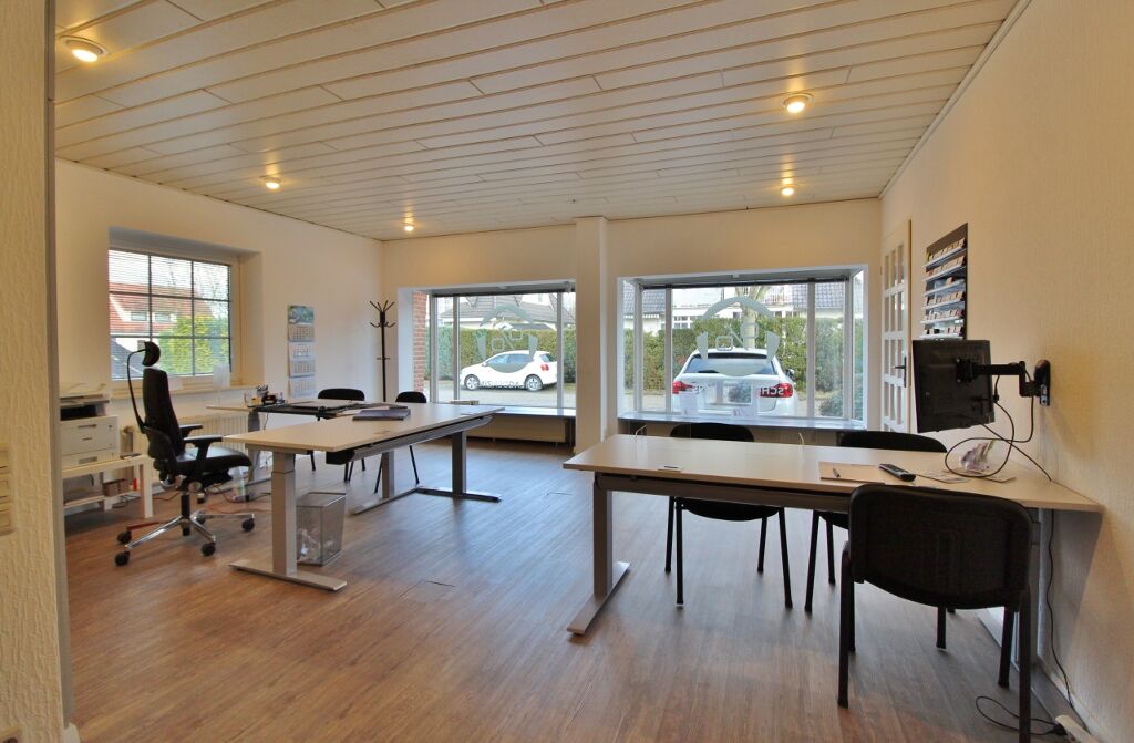 Das Wohnhaus mit dem anhängenden kleinen Gewerbebetrieb befindet sich in einem ruhigen Wohngebiet an der Ortsgrenze zu Weyhe-Leeste.