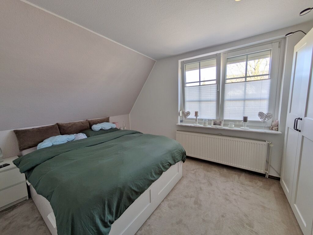 Im Obergeschoss befinden sich zwei Kinderzimmer, ein Elternschlafzimmer mit zusätzlichem Raum und ein gepflegtes Badezimmer aus den 1990er Jahren. Der Dachboden bietet reichlich Stauraum und ist über eine Bodeneinschubtreppe erreichbar.