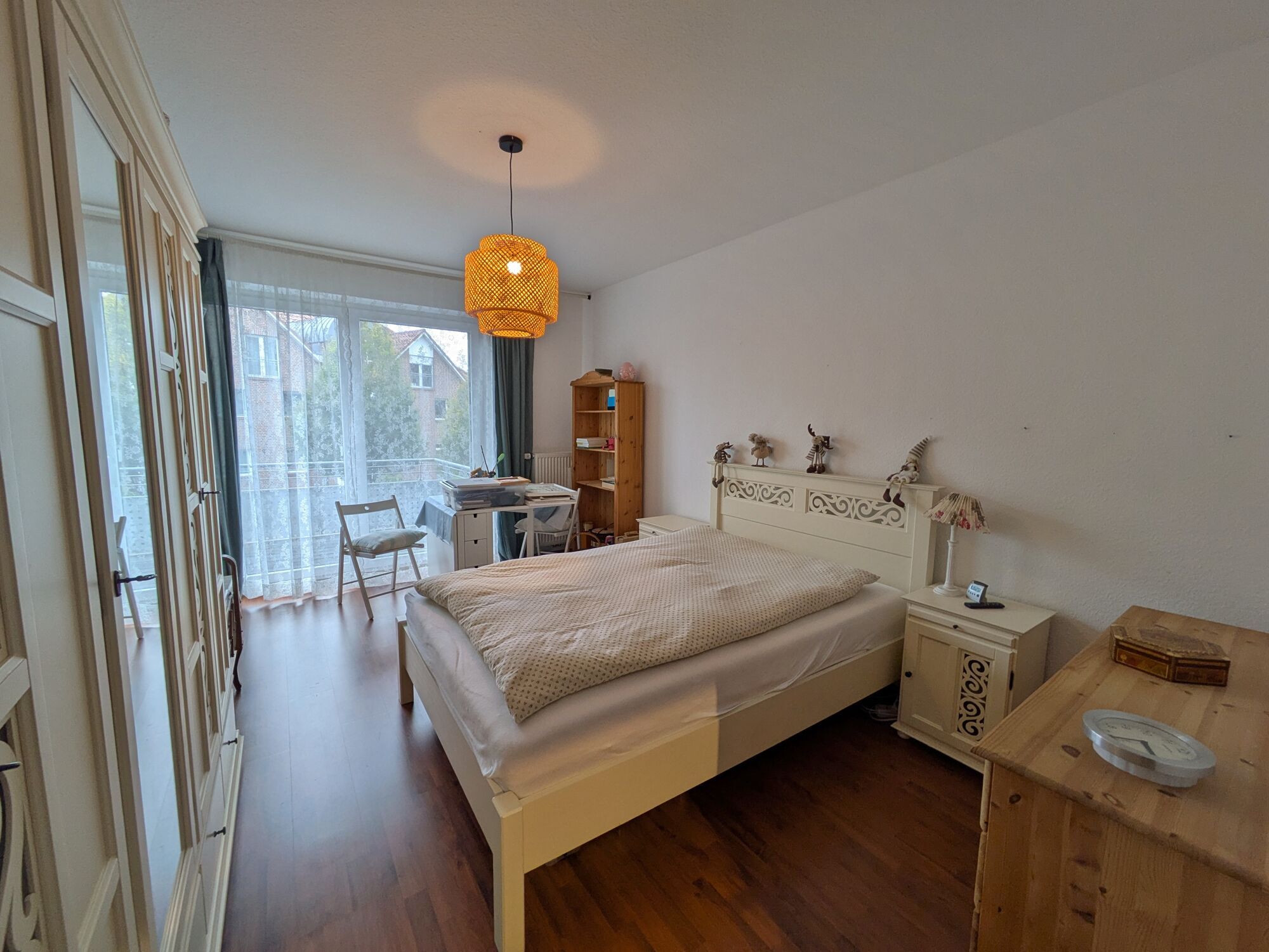 Das Schlafzimmer bietet genügend Platz für ein großes Bett und eine geräumige Schrankwand, sodass Sie sich hier ganz nach Ihren Wünschen einrichten können.