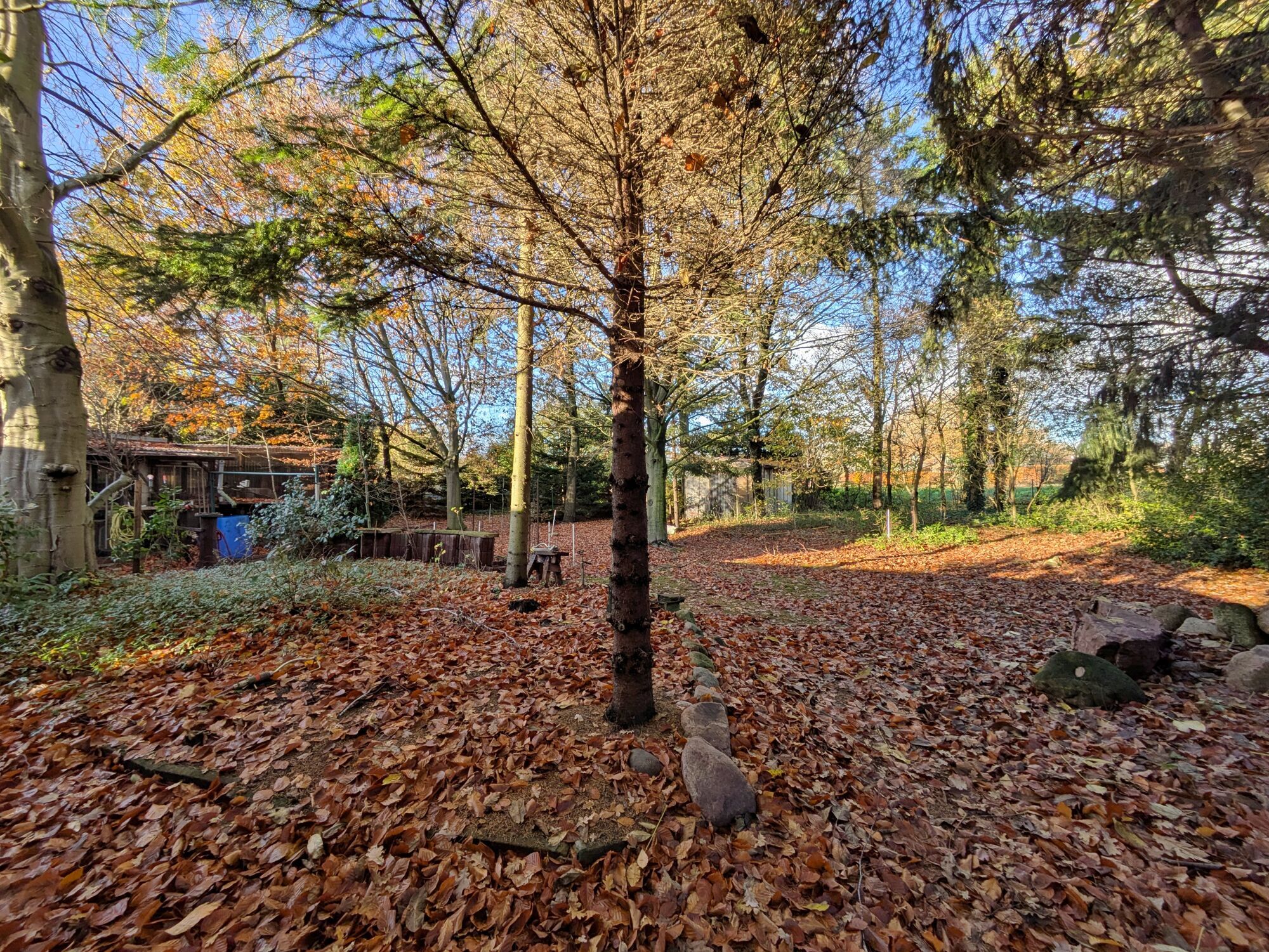 Im hinteren Bereich des Grundstücks sind diverse Bäume vorhanden, die im Bebauungsplan nicht als geschützt vermerkt sind - es ist die Baumschutzsatzung der Gemeinde Stuhr zu beachten.