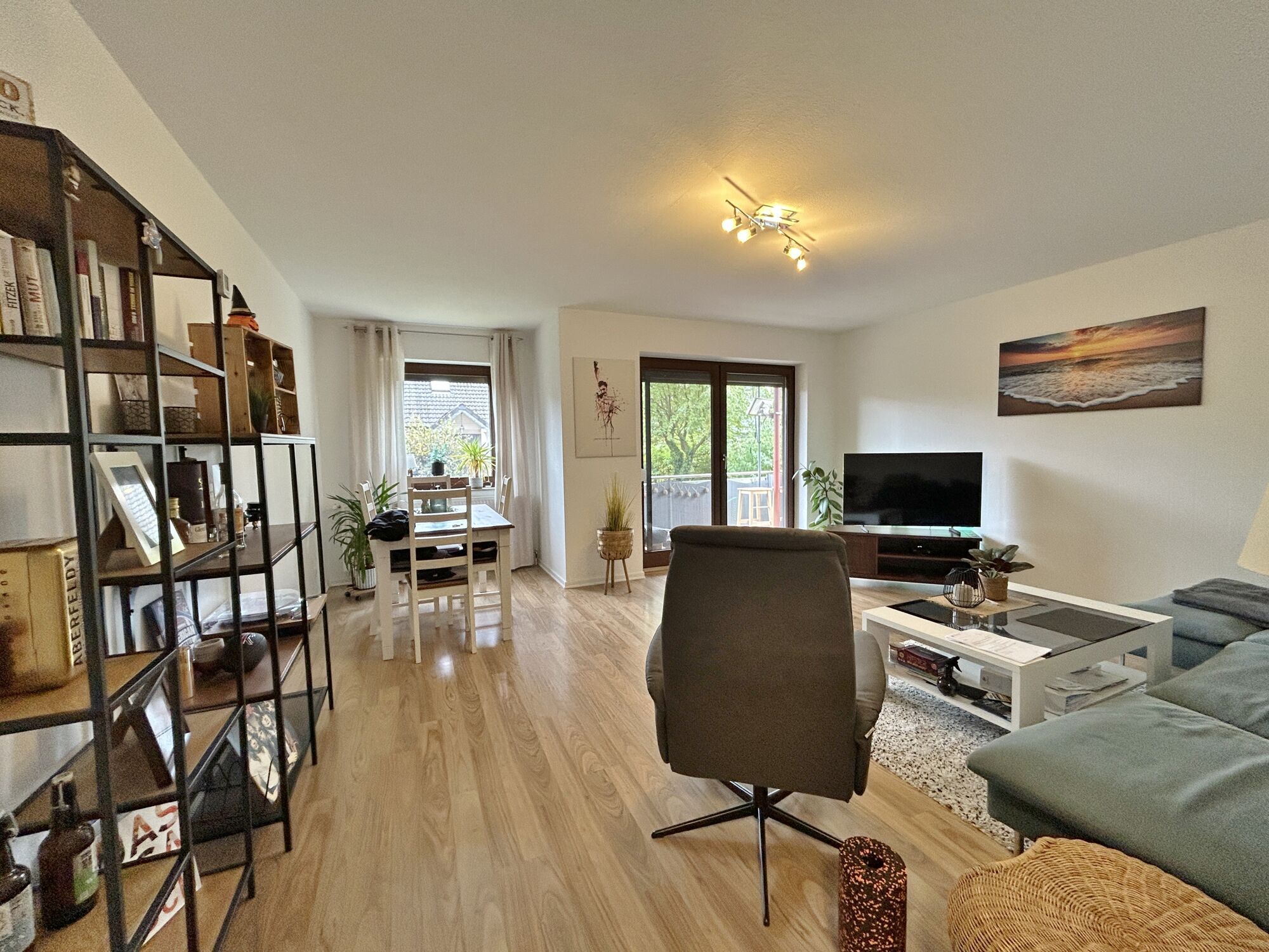 Das Wohn- und Esszimmer liegt zur rückwärtigen Hausseite und bietet Platz für eine große Sofalandschaft, Schrankwand und eine gemütliche Essecke. Zudem haben Sie von hieraus Zugang zu der nach Süden ausgerichteten Loggia. Diese bietet Ihnen einen schönen Blick in den Gemeinschaftsgarten und die angrenzenden Gärten.