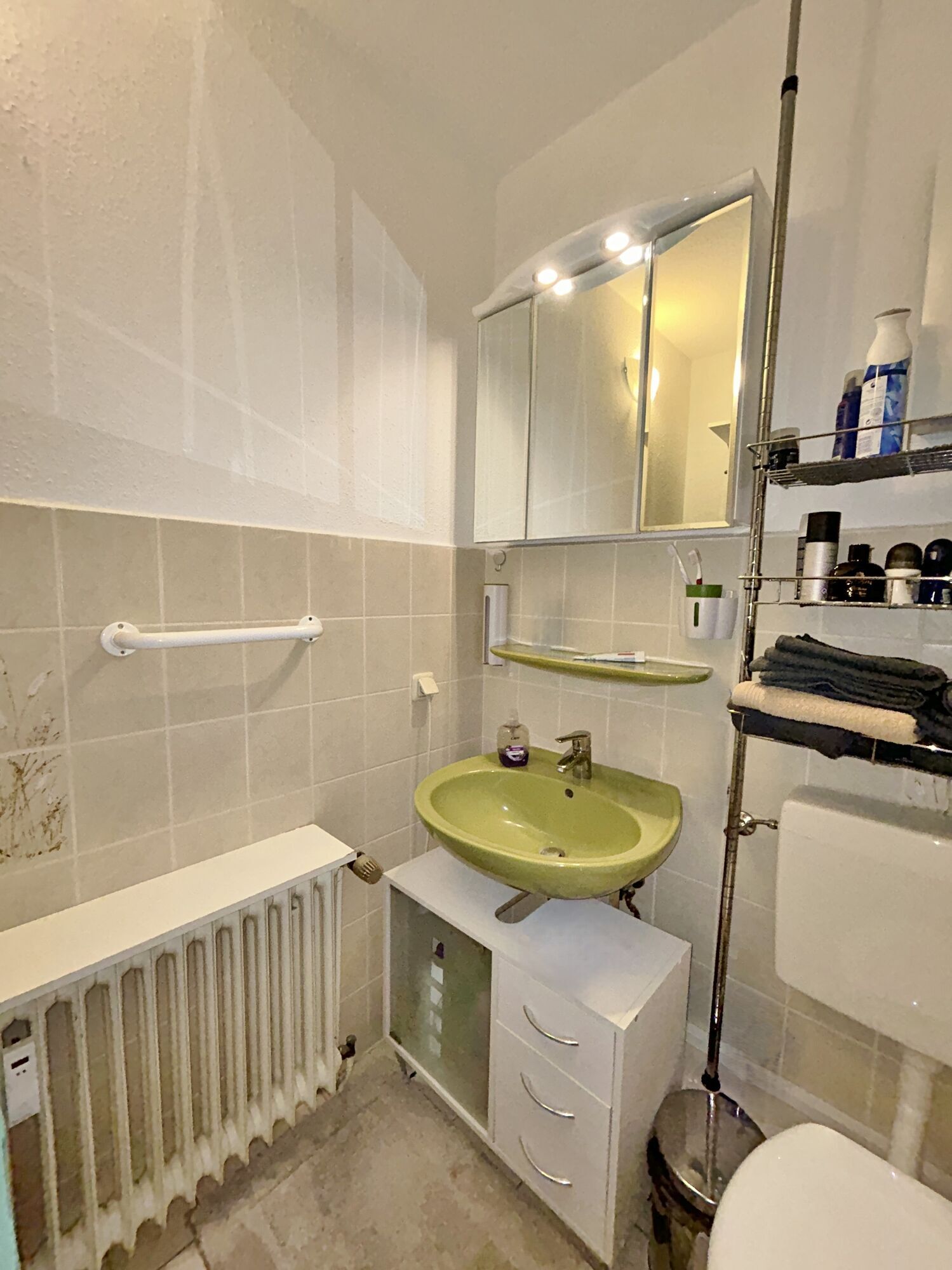 Das Badezimmer erreichen Sie direkt vom Wohnungsflur. Dieses ist mit einer platzsparenden Dusche versehen. Nachträglich wurde hier ein Waschmaschinenanschluss angebracht, sofern man nicht die gemeinschaftliche Waschmaschine im Keller nutzen möchte.