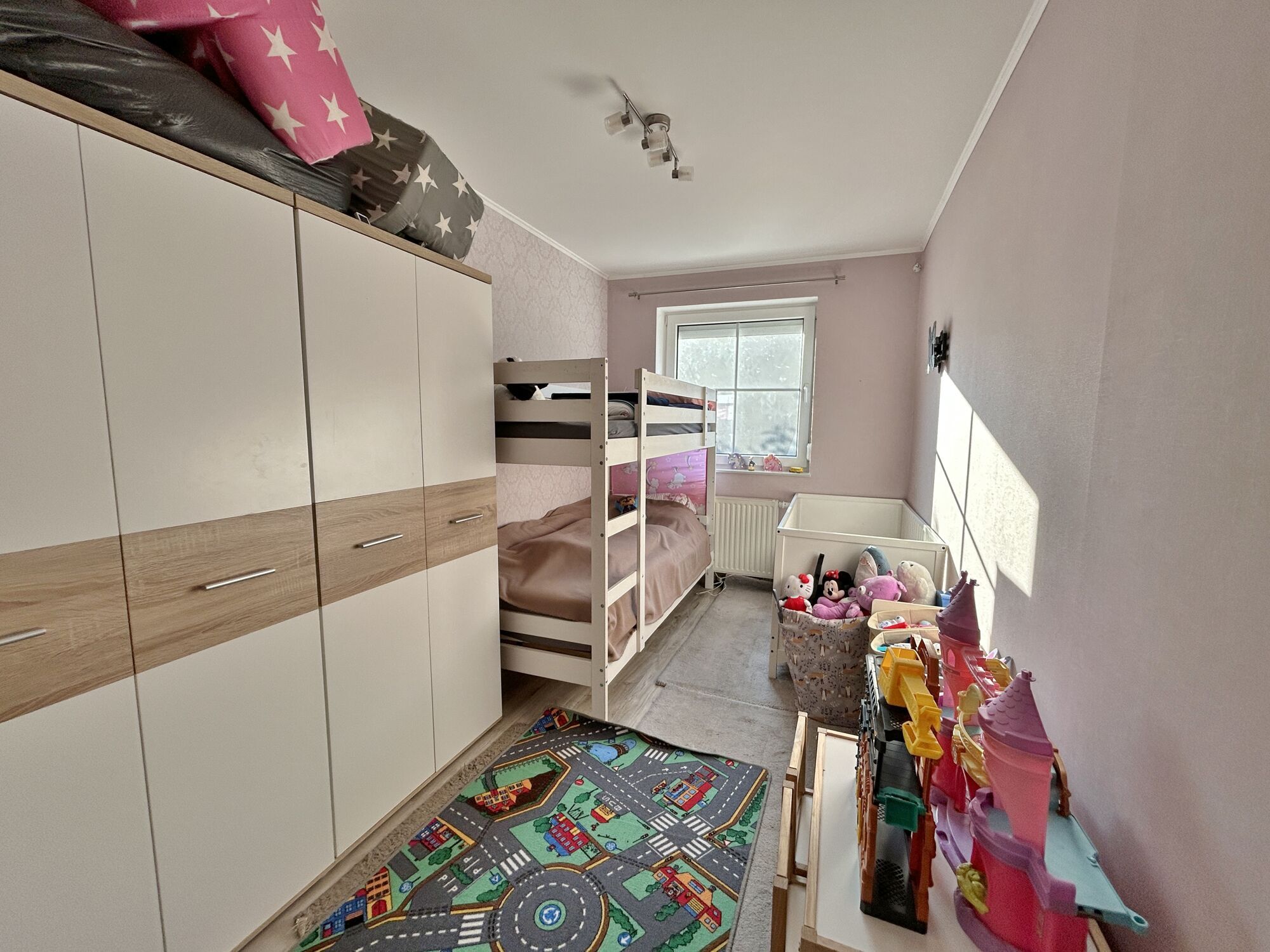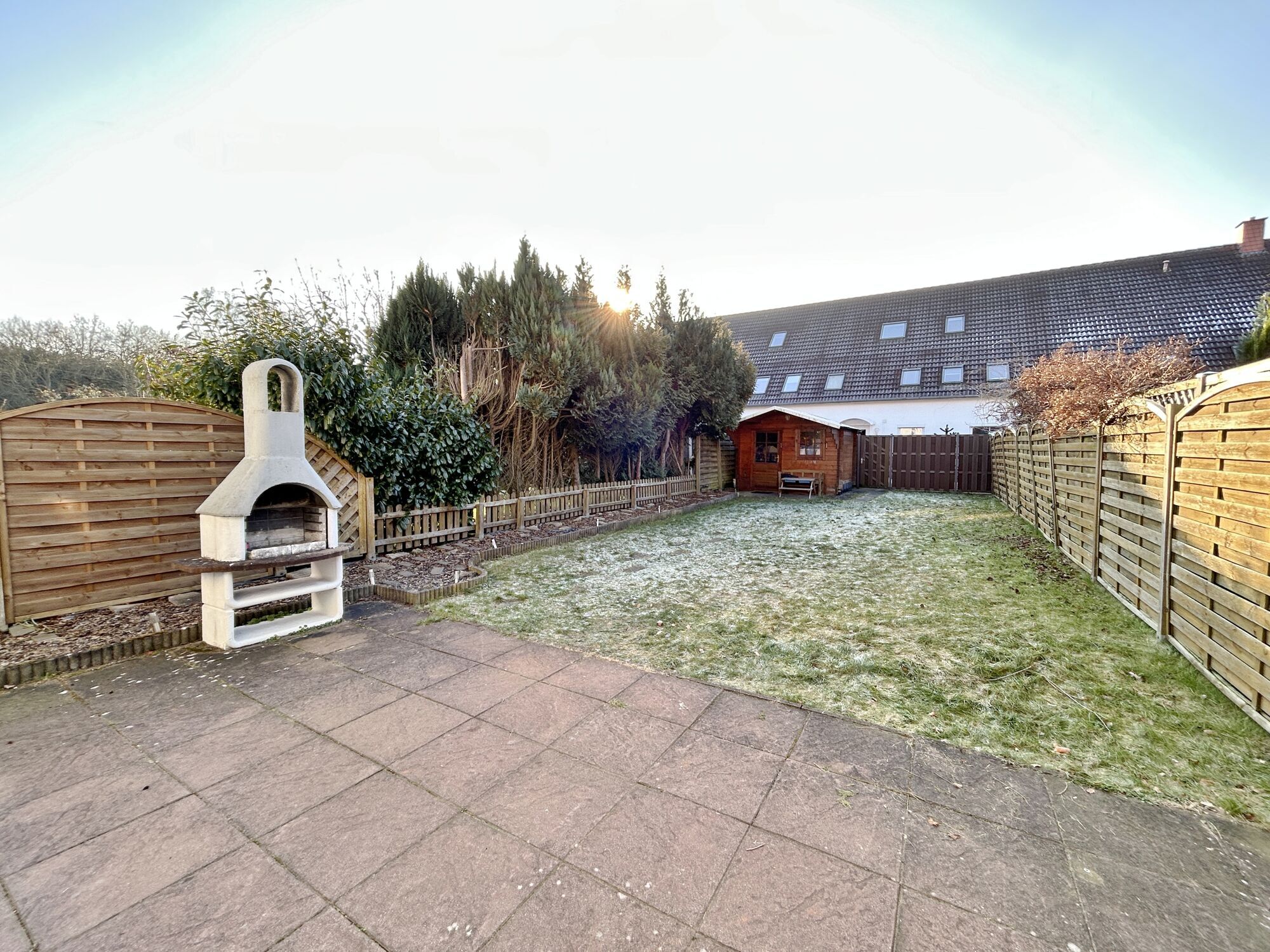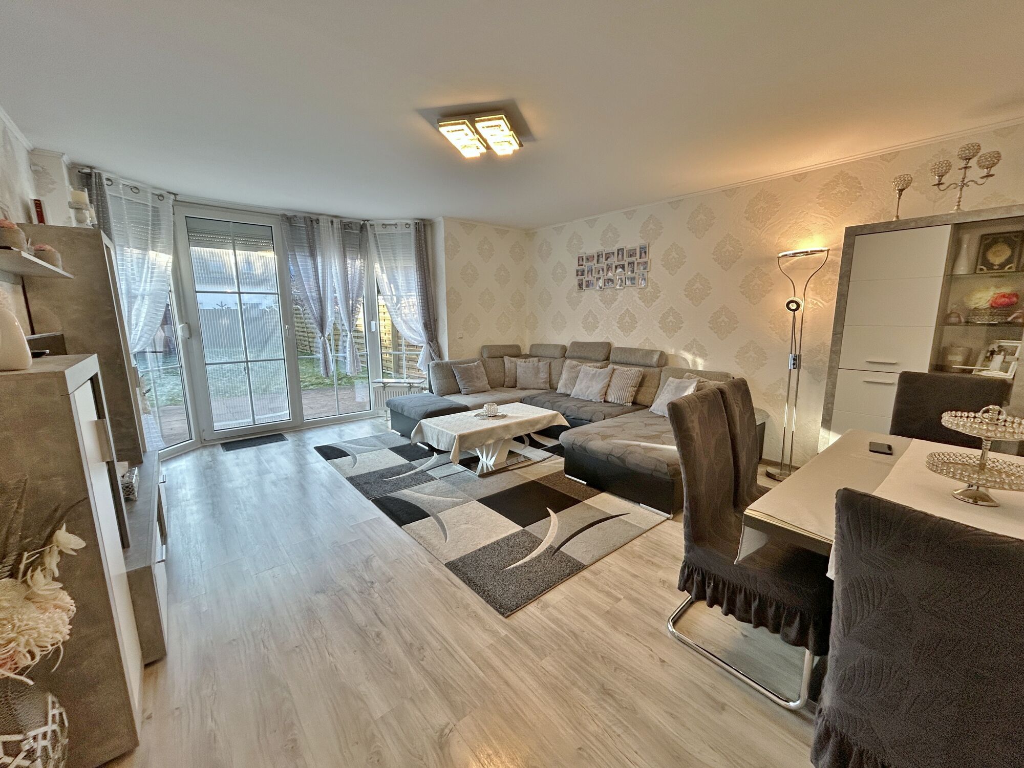 Nach dem Eintreten gelangen Sie in den Flur, von dem aus alle Bereiche der Wohnung bequem erreichbar sind. Das Wohnzimmer bildet den Mittelpunkt und überzeugt durch seine angenehme Größe sowie die große Fensterfront zur Terrasse. Von hier aus öffnet sich der Blick in den eigenen Garten, der viel Platz für entspannte Stunden im Freien bietet. Ein Gartenhaus ergänzt die Außenfläche praktisch, etwa für Geräte, Fahrräder oder saisonale Möbel.