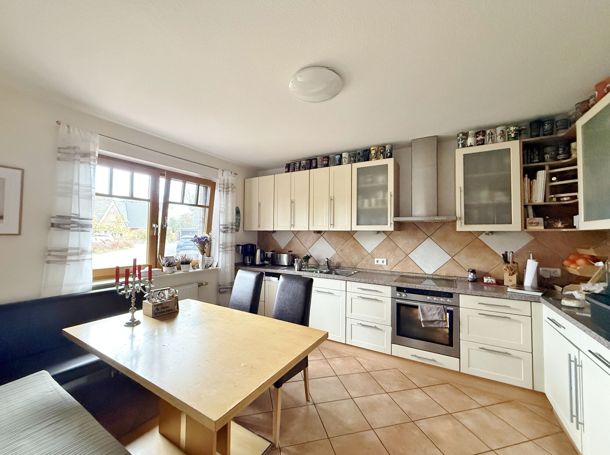 Die Küche bietet viel Platz sowie eine helle, funktionale Einbauküche. Ein zusätzlicher Essbereich eignet sich perfekt für das Frühstück oder die Mahlzeiten im Alltag.