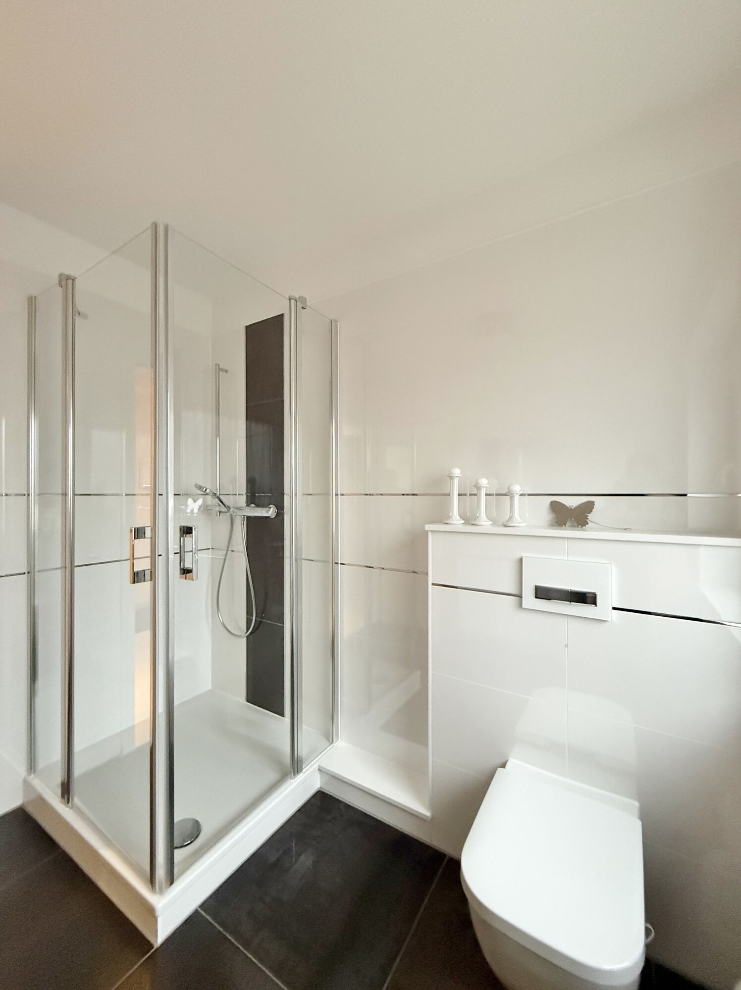Ein besonderes Highlight ist das moderne Duschbad, das im Jahr 2021 umfassend modernisiert wurde und sich heute in zeitgemäßem, stilvollem Design präsentiert.