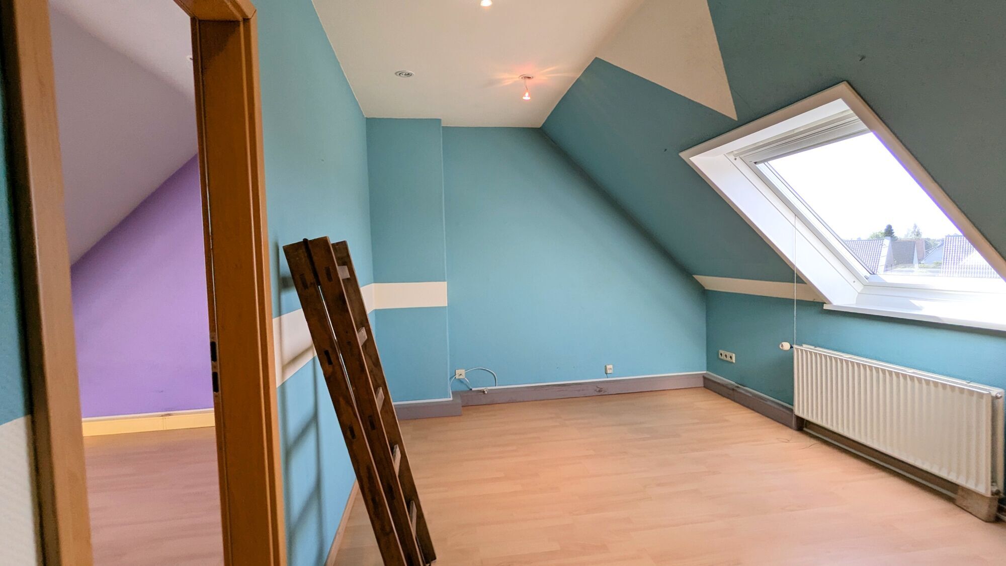 Das Dachgeschoss beherbergt ein ursprünglich großes Zimmer, das durch eine Leichtbauwand in zwei separate Räume unterteilt wurde – ideal als Kinderzimmer, Homeoffice oder Hobbybereich. Abstellfläche finden Sie auf dem Spitzboden.